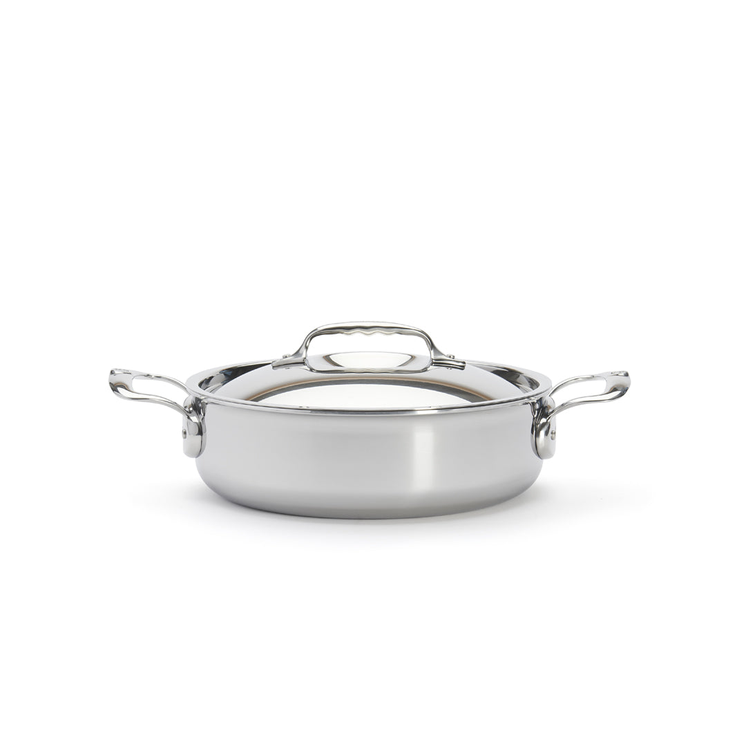 The Affinity sauté pan from de Buyer is ideal for sautéing vegetables or pieces of meat. Used to brown foods quickly for ease. It's low edge avoids condensation on the sides and lets humidity evaporate, thereby improving caramelisation of the juices. The long, elegant, ergonomic cast stainless steel handle, firmly fastened with rivets, guarantees a natural and comfortable grip.