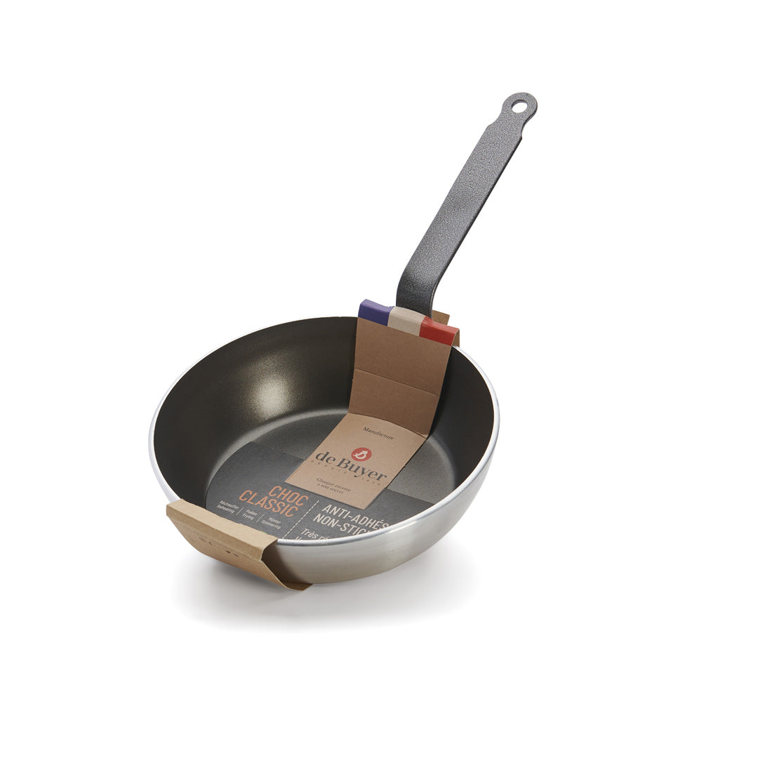 The De Buyer Choc 24cm conical sauté pan is a high-quality kitchen cookware designed for sautéing and frying. Its 24cm size and conical shape offer even heat distribution, while the non-stick coating ensures easy food release and quick clean up. The pan is durable and suitable for a variety of stovetops, making it a versatile choice for home cooks.