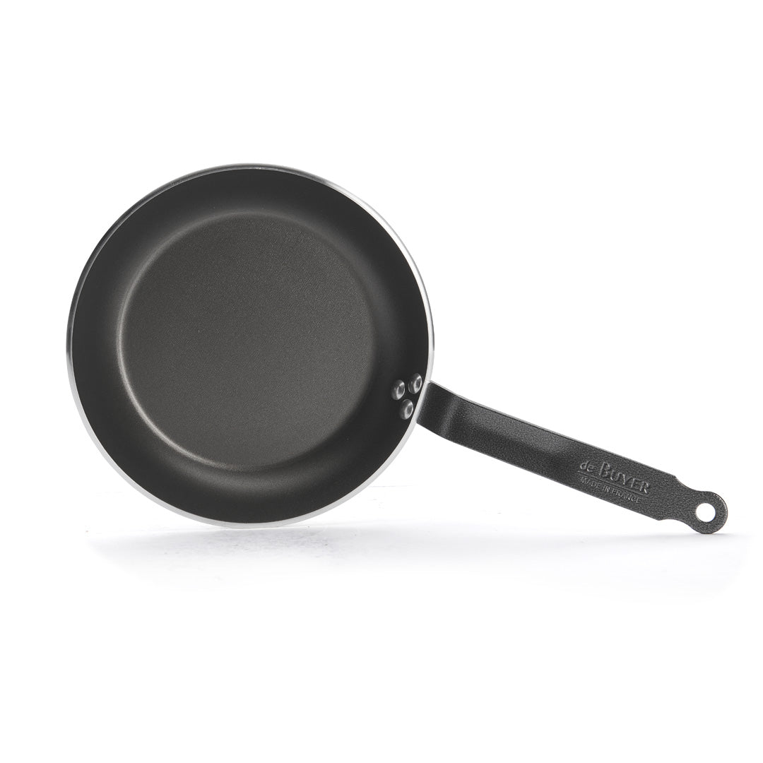 The De Buyer Choc 24cm frying pan is a high-quality cookware item known for its durability and even heat distribution. Made from thick, heavy-duty aluminium, it features a non-stick interior coating for easy food release and cleaning. Its ergonomic handle and versatile size make it a popular choice for home chefs seeking reliable and efficient frying pans.