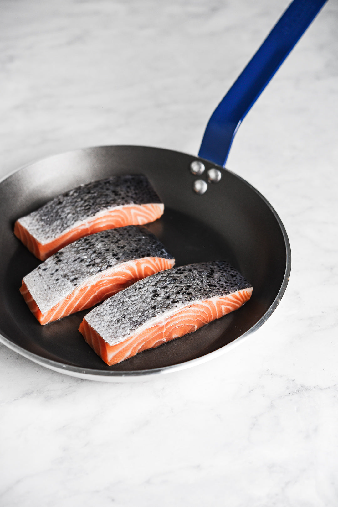 Unlike what you might think, the non-stick pan is a specialist... perfect for gently cooking fish, vegetables, legumes, grains, etc. without letting them colour. I’m also ideal for simmering stews, reheating ready-meal elements and thickening sauces without affecting taste, colour or flavour. It's not a generalist pan: if you want to sear, brown or grill, use a steel pan instead.
