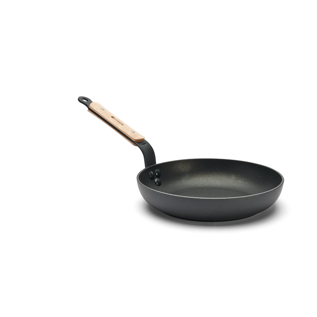 The De Buyer Choc B Bois Frying Pan combines professional performance with elegant design, making it perfect for everyday cooking. Its high-quality non-stick coating ensures effortless food release and easy cleaning, while the sturdy aluminum body provides excellent heat conductivity for even cooking. The pan features a beautiful beechwood handle, adding a touch of sophistication and comfort. Ideal for delicate dishes and searing, it’s a versatile addition to any kitchen.