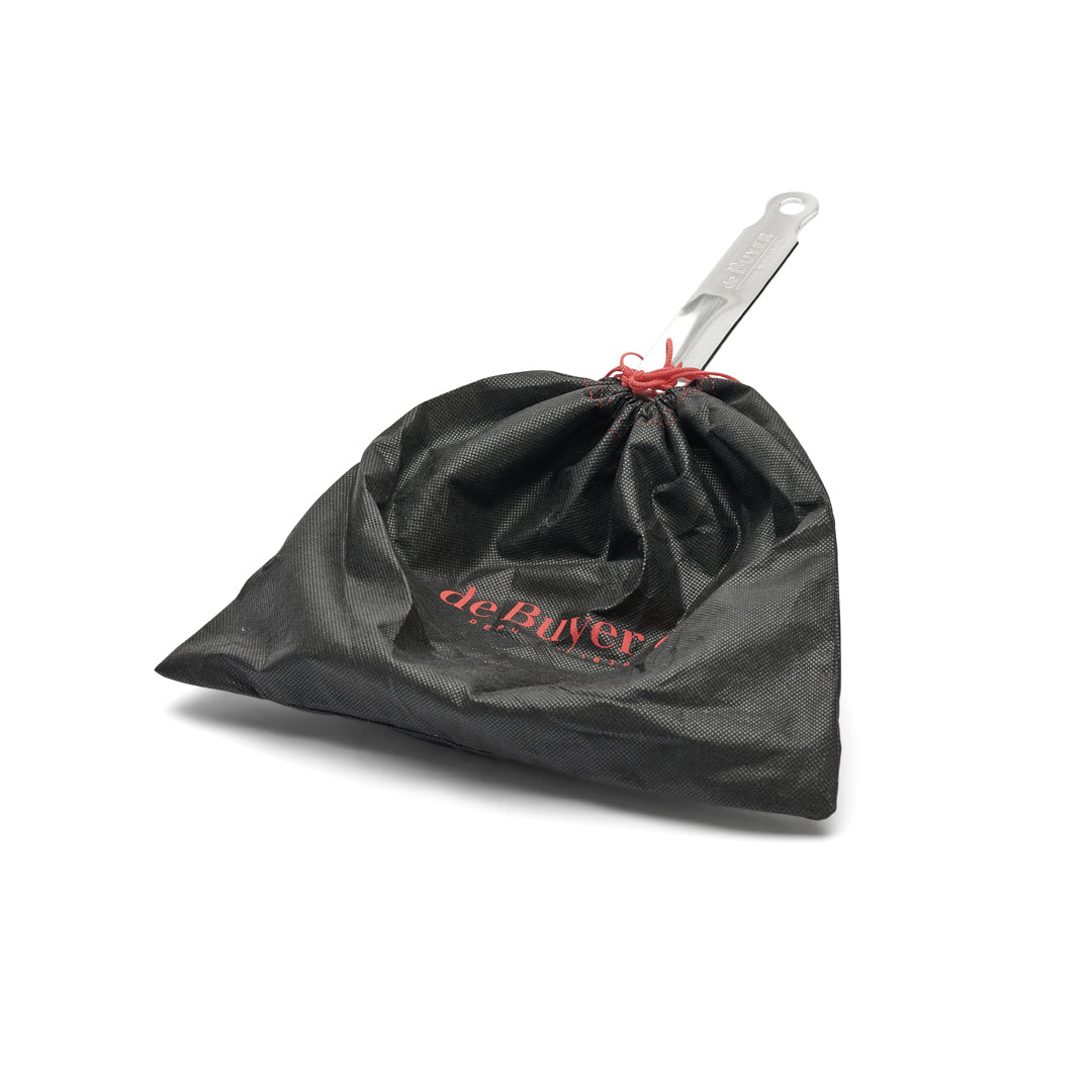- Stainless steel riveted handle, curved in French-style: robust; easy handling; ergonomic and move hand away from the heat source.