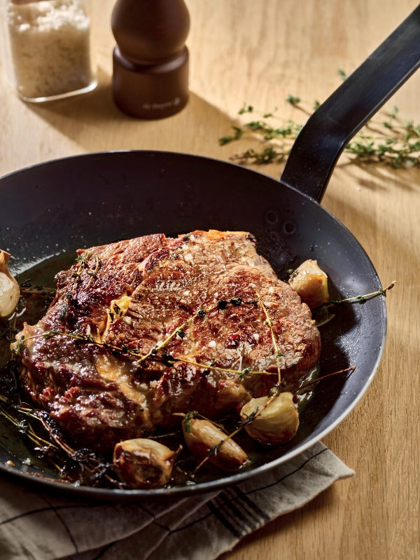 Combine the best of durability, performance and style with an innovative blue carbon steel that's crafted to elevate your cooking experience. The blue carbon heats quickly, ensuring even heat distribution for perfect searing, sauteing, and browning every time. Lighter than cast iron but just as tough, these pans develop a natural non-stick surface with use, making them a sustainable, chemical-free alternative.