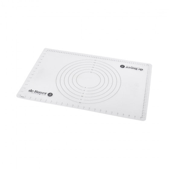 The De Buyer silicone tart pastry mat is a versatile 60cm baking tool with convenient 12-36cm measurement marks. Its non-stick surface makes rolling out pastry and dough effortless, and the clear, precise measurements ensure uniform tart sizes. It's an essential kitchen accessory for pastry enthusiasts and bakers.
