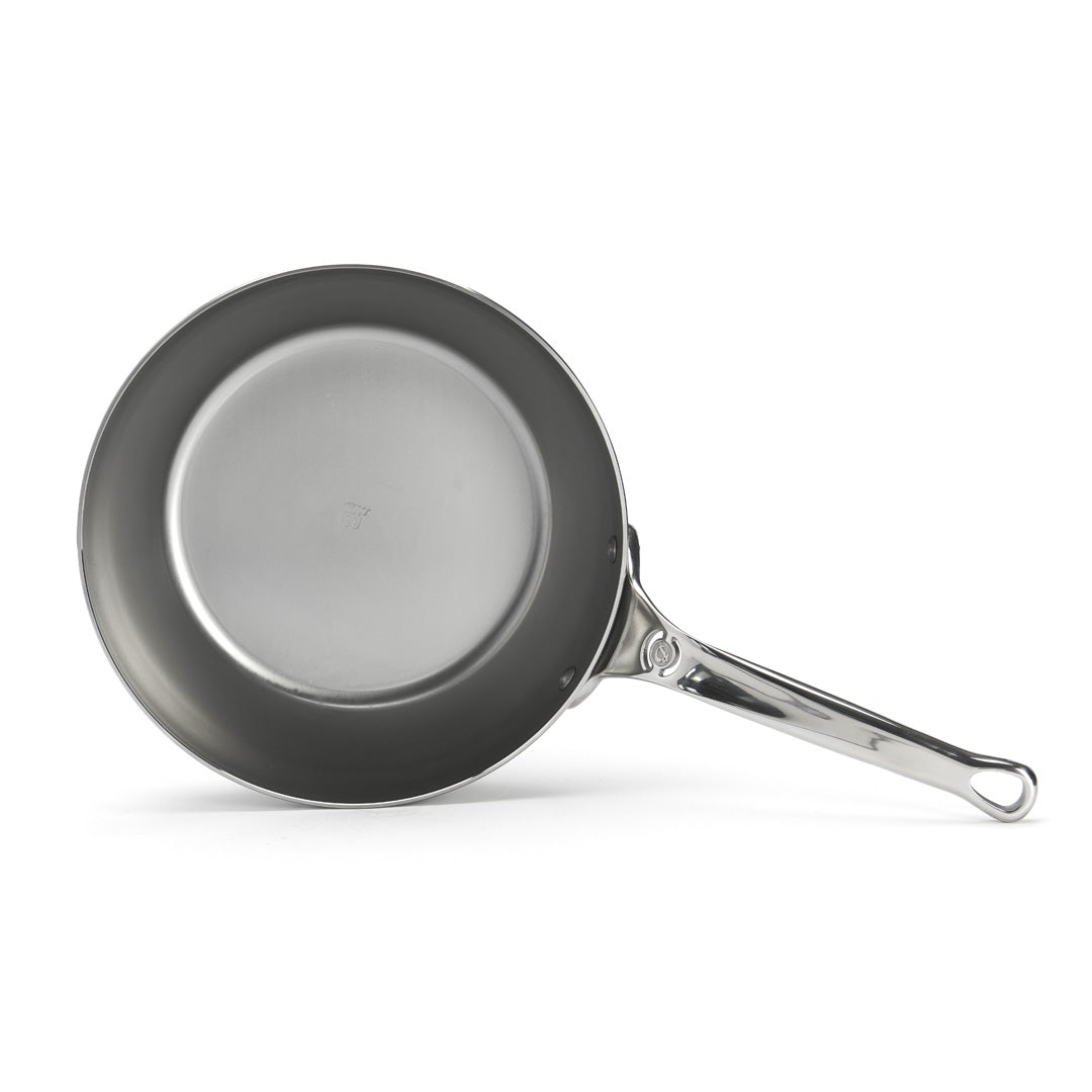 Riveted cast stainless steel handle curved in French-style: easy handling; ergonomic.
