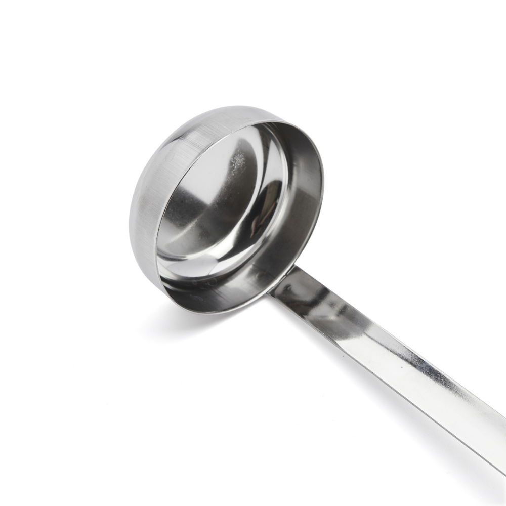 An essential tool for pizza enthusiasts and professional chefs, designed to streamline sauce application for consistently delicious pizzas. With a flat-bottomed design it allows for effortless, even spreading of tomato sauce over pizza dough without causing damage. Crafted from durable stainless steel, this ladle ensures longevity and easy maintenance.